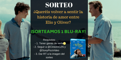 El 23 de mayo salió a la venta el Blu-Ray y DVD de esta película sobre el verano más inolvidable de los últimos años. Gracias a la amabilidad de Sony Pictures, Cinezin ha conseguido un Blu-Ray para sortear con sus seguidores de Twitter que iniciamos hoy lunes 18 de junio. ¿Queréis volver a sentir la historia de amor entre Elio y Oliver?